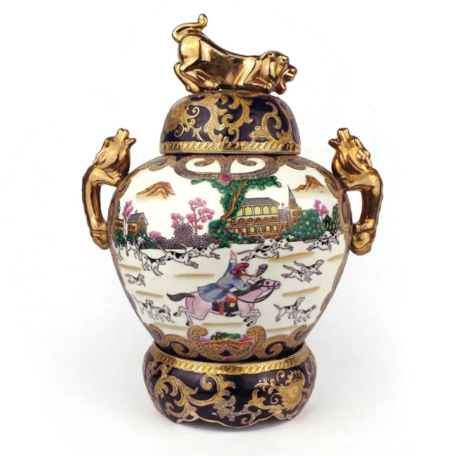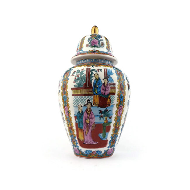 2025 Modern Handmade Aluminum Blue Color Leaf Design Enamel Sticker Applied Ginger Jar for Home Decoration Wedding Occasion
