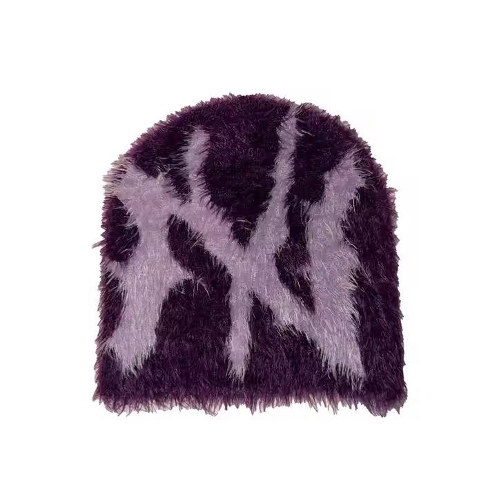 2025 Mohair Men Women Letter Jacquard Beanie With All Over Crochet Winter Wool Knit Ski Beanie Mohair Caps for Winter