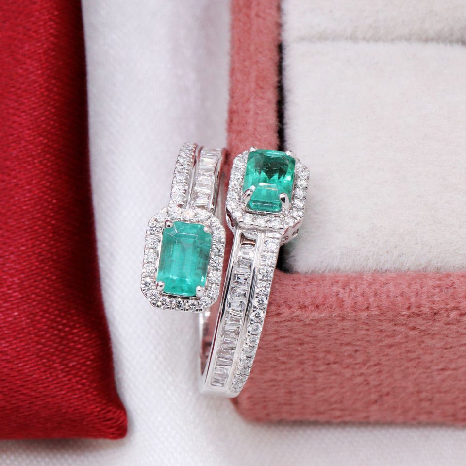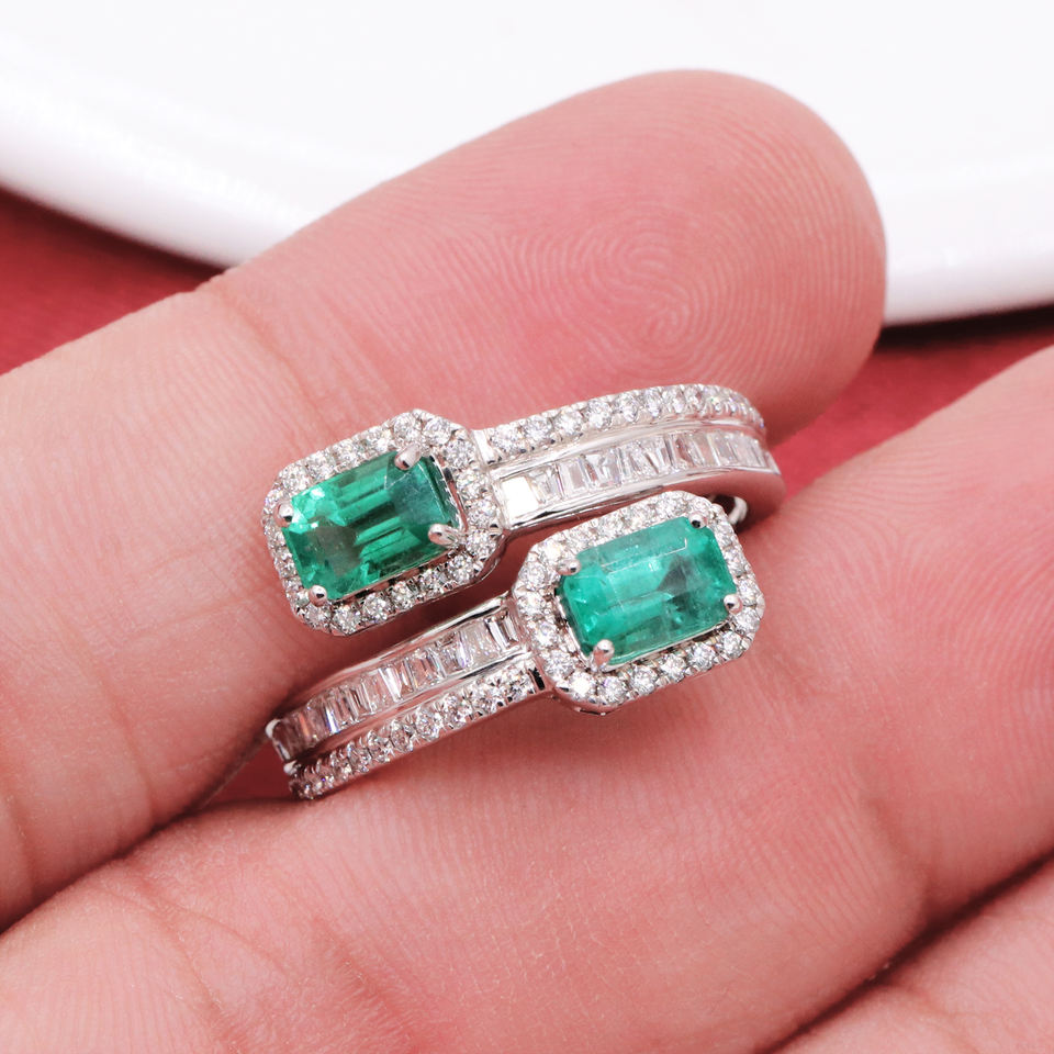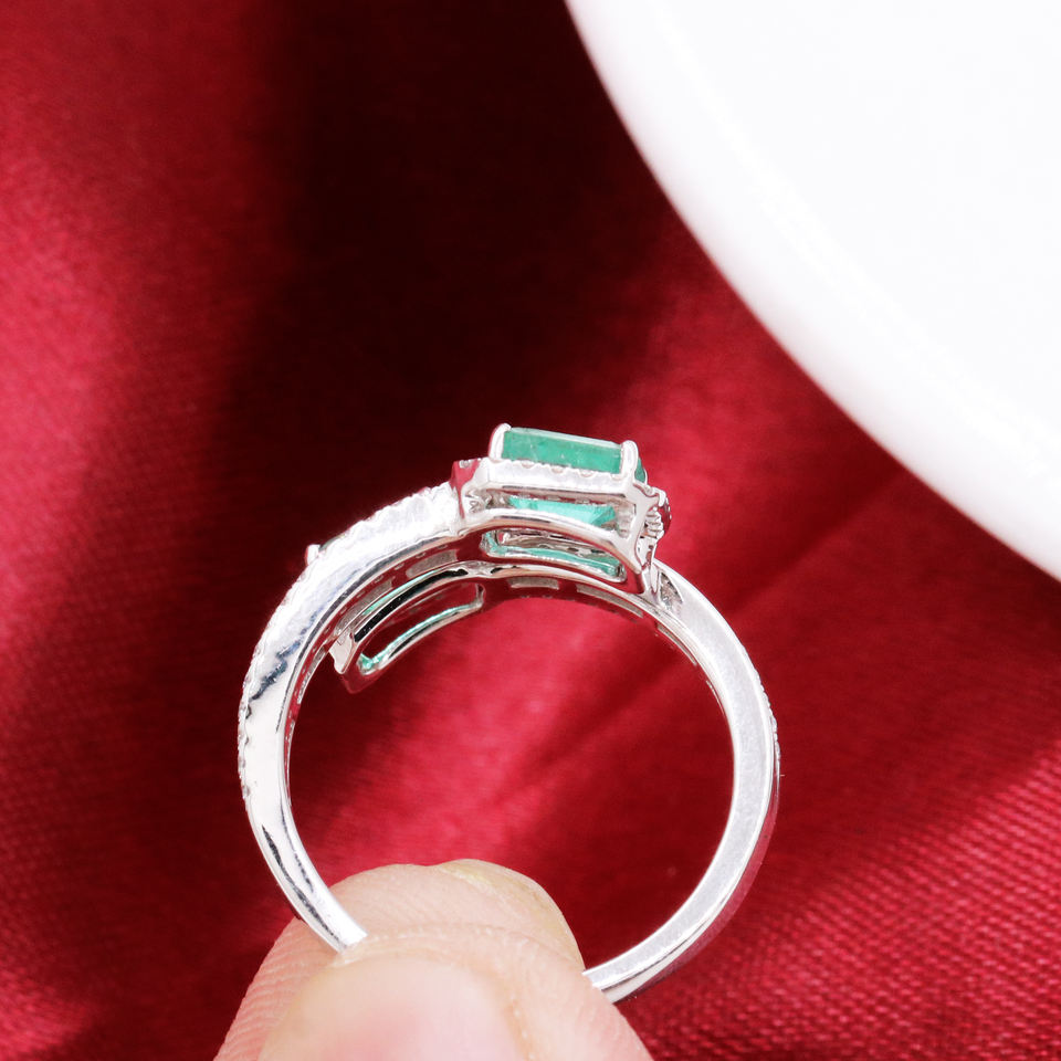 Item Name:Natural Emerald Gemstone & Diamond 18k White Gold Ring