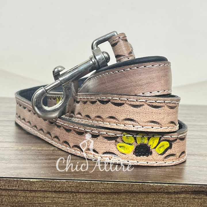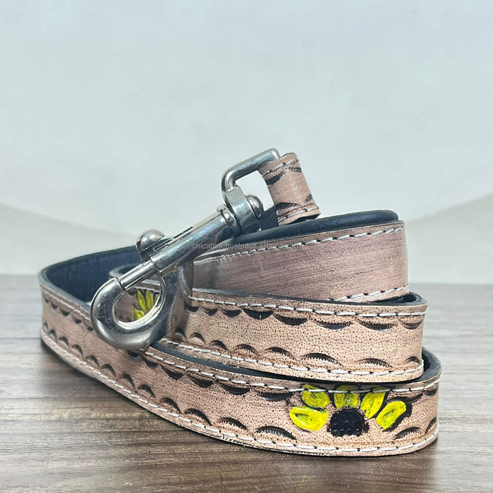 Laisse d'animal familier de conception florale en cuir redessiné à la main