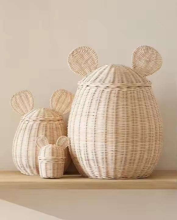 2025 nouveauté panier flexible tissé en rotin beige Design unique adapté aux enfants avec oreilles fabriqué au Vietnam