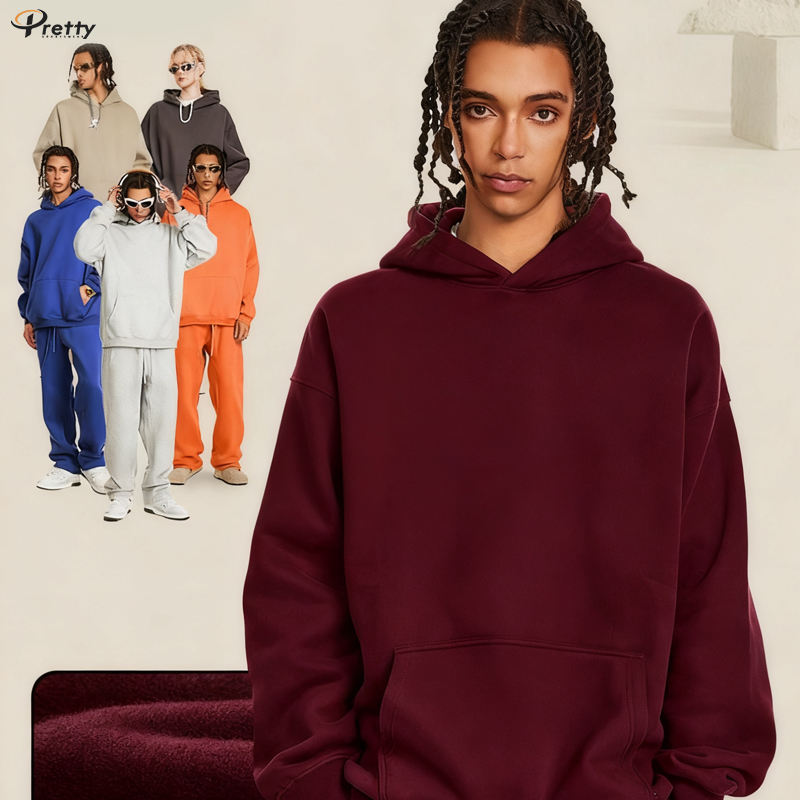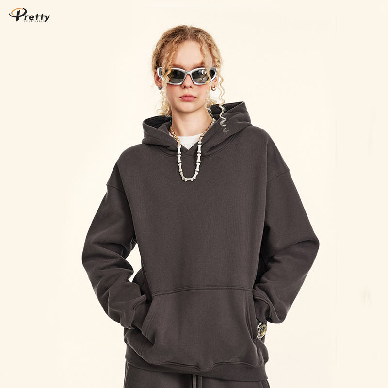 2025 nouveauté personnalisé automne Style américain couleur unie décontracté et ample taille Extra-large sweat à capuche ajoutant polaire