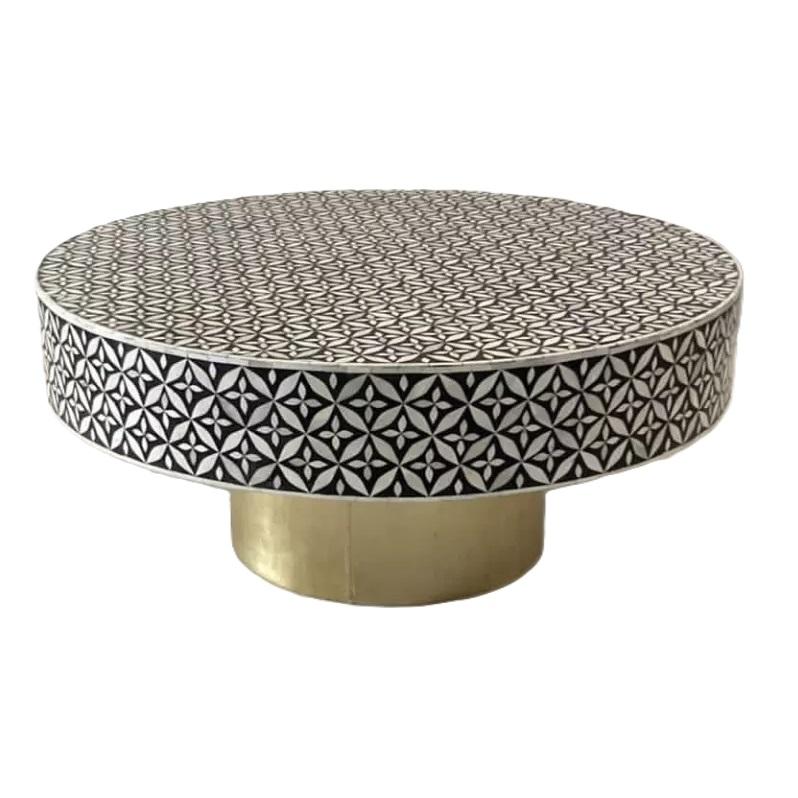 2025 nouveauté table basse de forme solide fabriquée à la main avec incrustation d'os à motif floral artisanat naturel par ZAM ZAM IMPEX