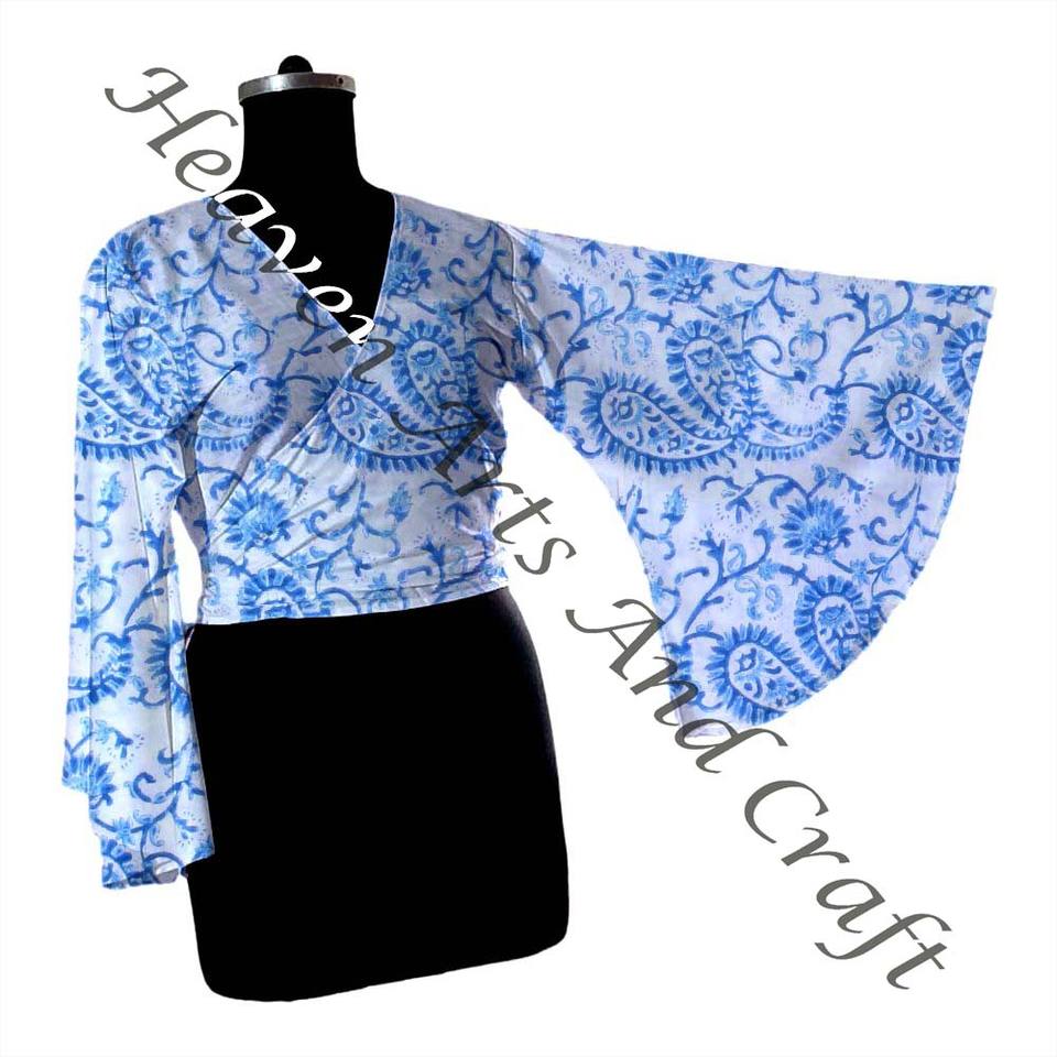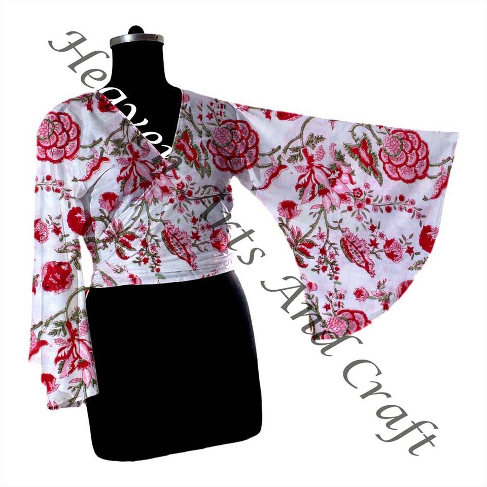 Model Number:Hand Block Print Cotton Tie Tops Bell Sleeves