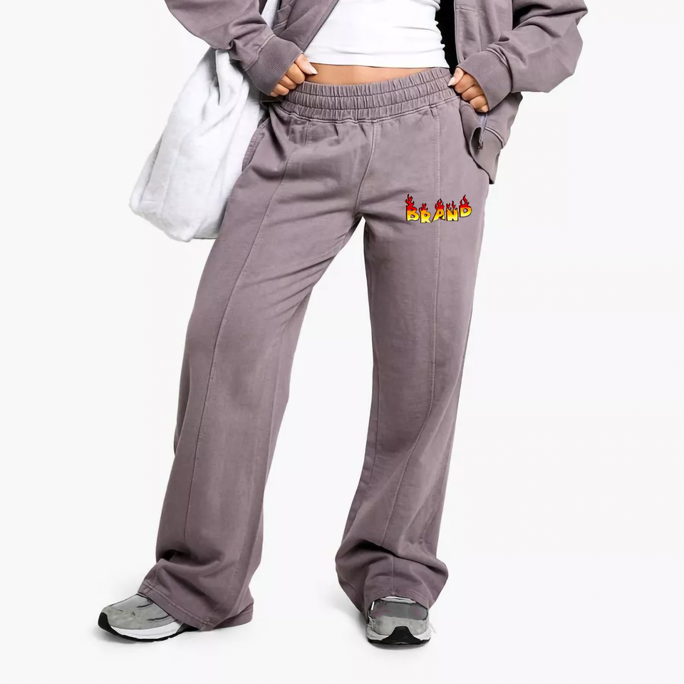 2025 nouveauté haute qualité broderie personnalisée Logo femmes Baggy pantalons de survêtement jambe large tenue décontracté Hip Hop hiver lavé polaire