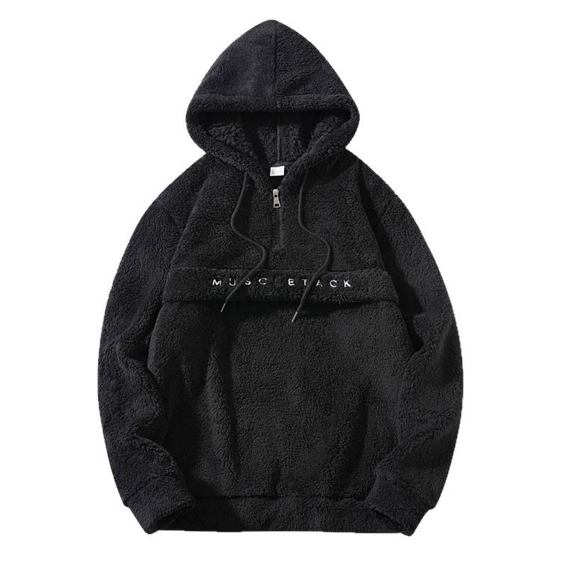 Nouvelle collection Automne/Hiver 2025 – Sweat à capuche décontracté pour homme, style international, doublé polaire, avec demi-fermeture éclair et lettres, en tissu corail, à manches longues