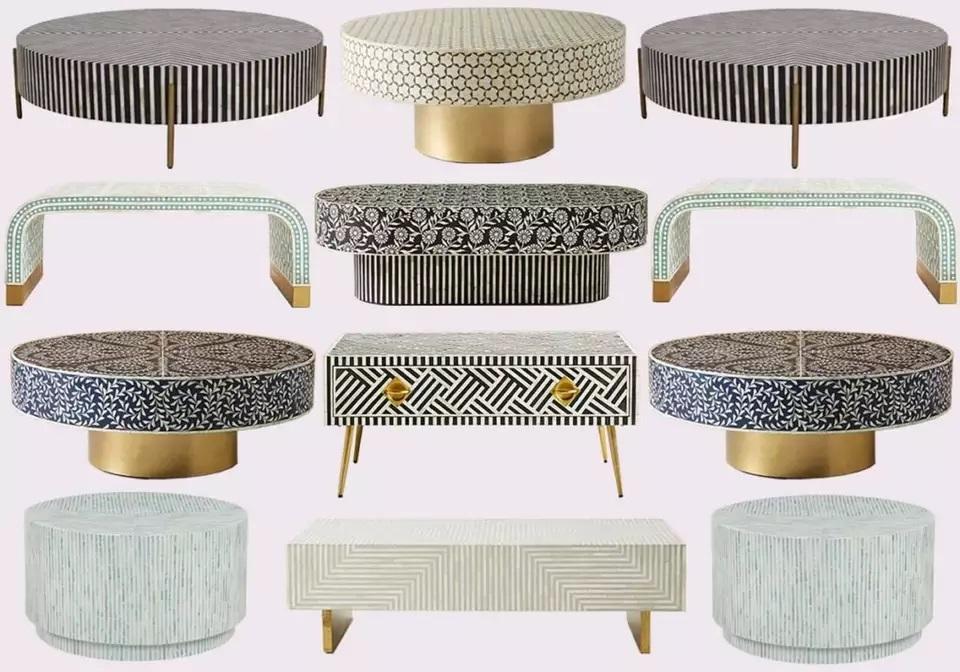 Table de centre de café en incrustation d'os au design géométrique Mobilier indien fait à la main pour le salon Table d'appoint moderne