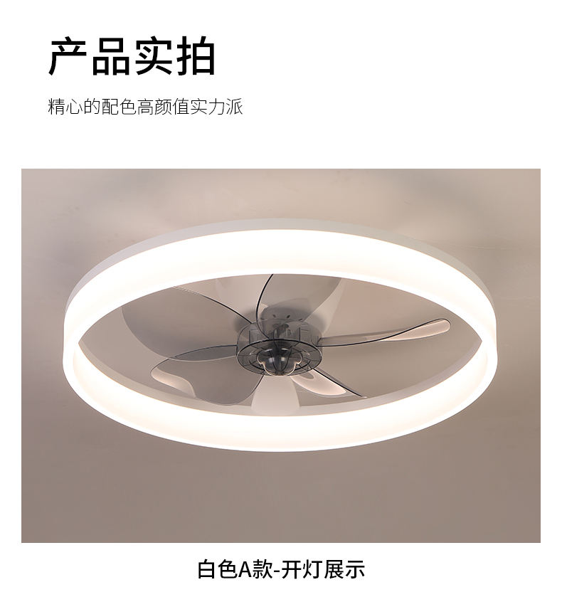 Ventilateur de plafond LED intelligent moderne 2025, 6 vitesses, gradation progressive, DC, métal silencieux, profil bas, 5 pales, Ra80, 3000K/4000K/6500K