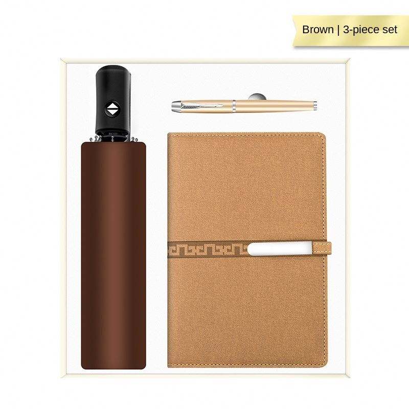 Ensemble cadeau carnet avec stylo et parapluie solaire automatique