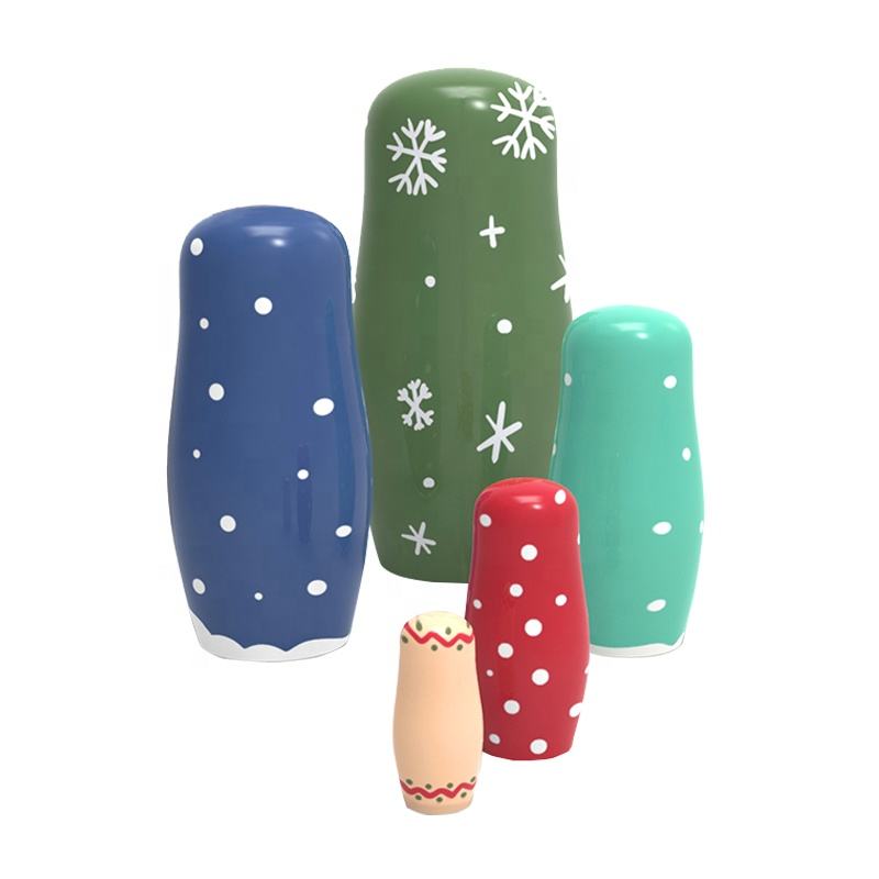 2025 nouvelle conception de noël peinture à la main enfants 5 pièces personnalisé nidification russie poupée jouet jouets en bois