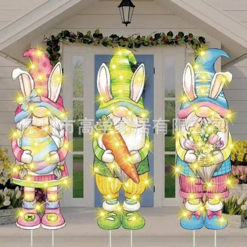 Nouveauté 2025 : Grand lapin et carotte lumineux LED pour jardin, panneau de jardin gonflable pour décoration de jardin extérieure, décorations de vacances de Pâques