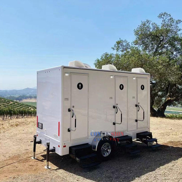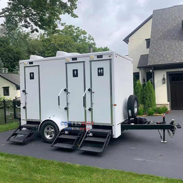 2025 nouveau personnalisé 3 stalles toilettes remorque douche extérieure salle de bain remorque Porta pot Mobile Portable toilette remorque à vendre