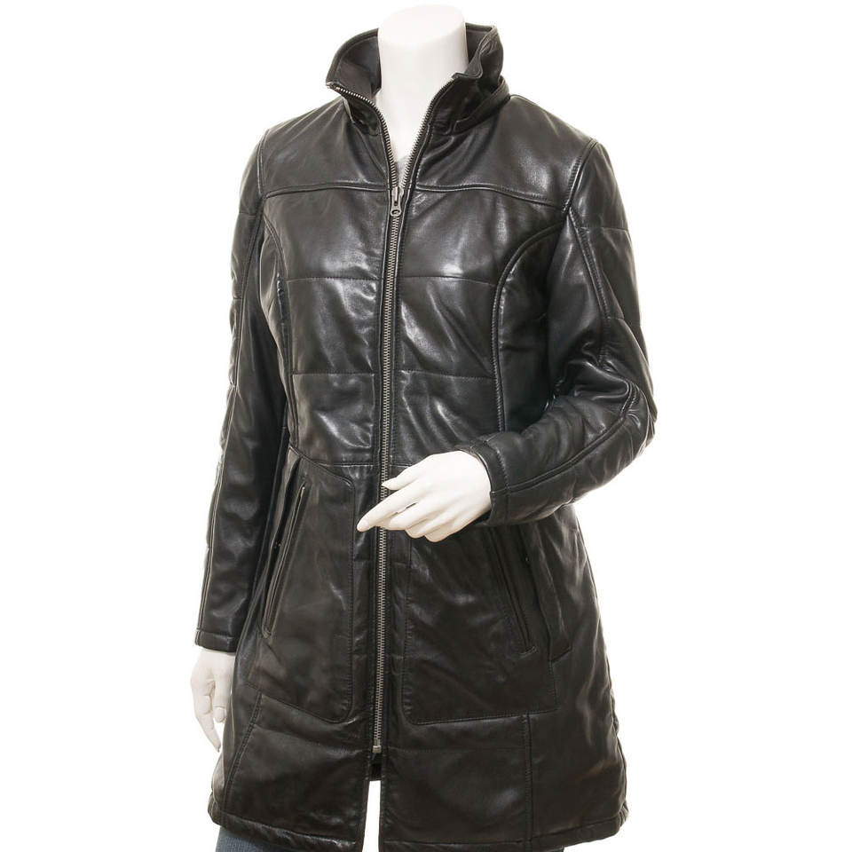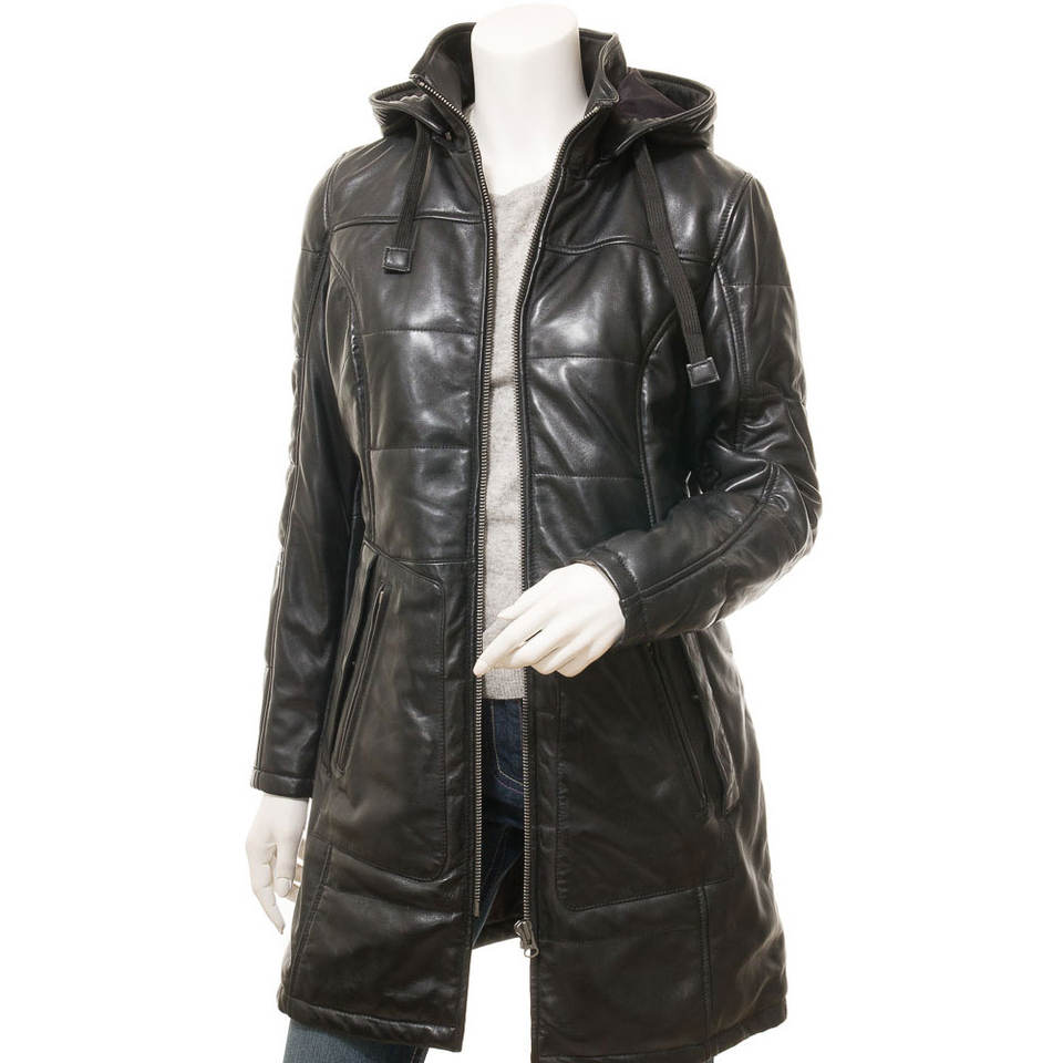 2025 nouvelle conception personnalisée de haute qualité à capuche longues femmes vestes en cuir au prix de gros femmes veste en cuir avec fermeture éclair sur le devant