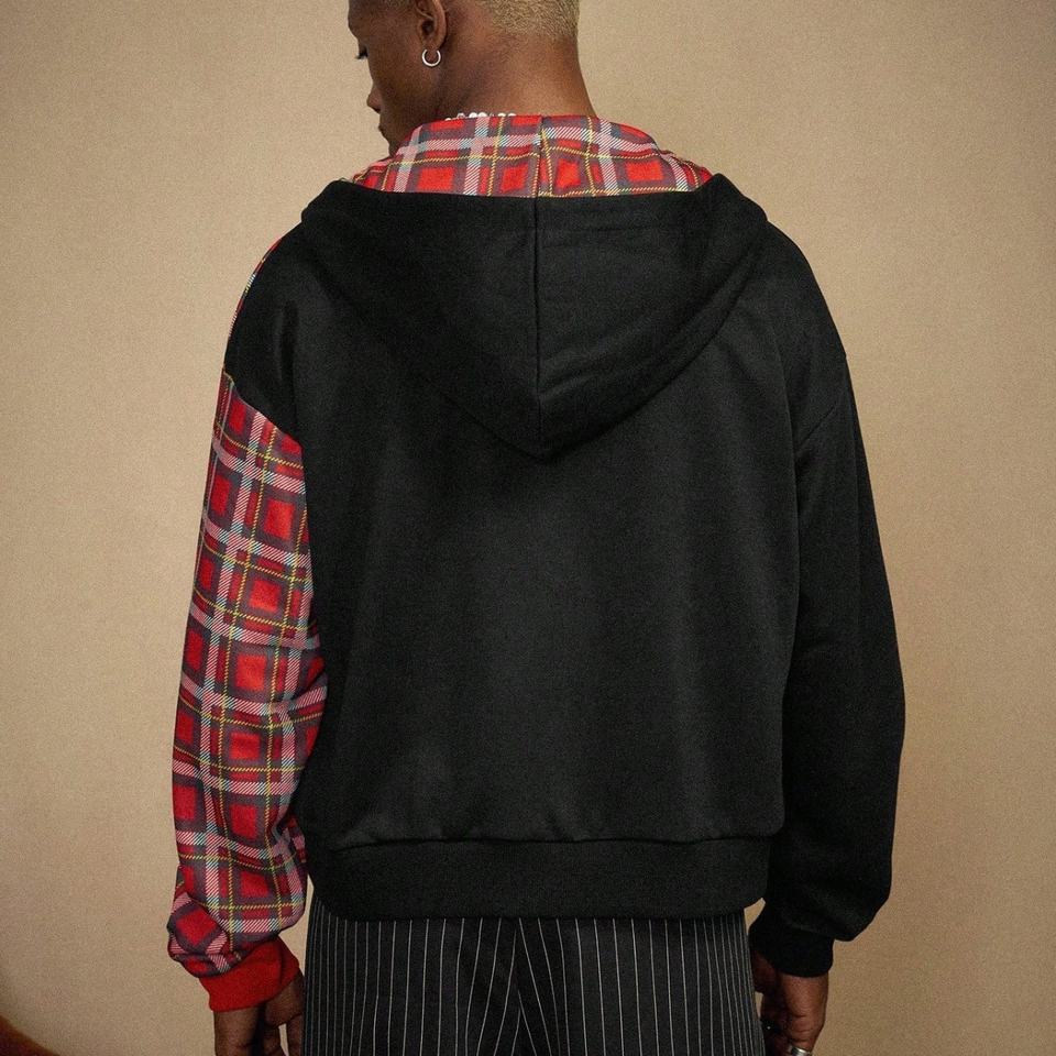 Nouveau Hoodie Zippé 2025 Personnalisé avec Patch Brodé et Motif Patchwork à Carreaux, Coupe Oversize Boxy Courte, Style Streetwear pour Homme