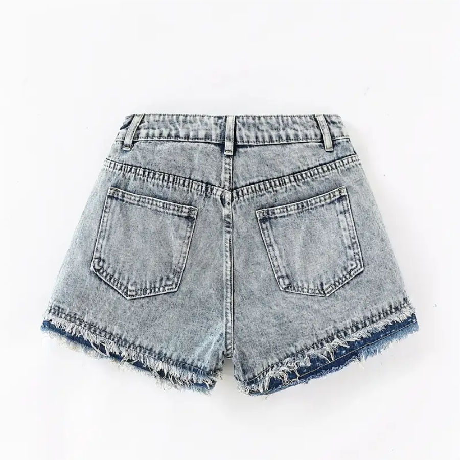 2025 New Custom High Quality Low rise 100% Cotton Gray Woman's Denim Shorts Casual Style,Distress Style Shorts For Women's