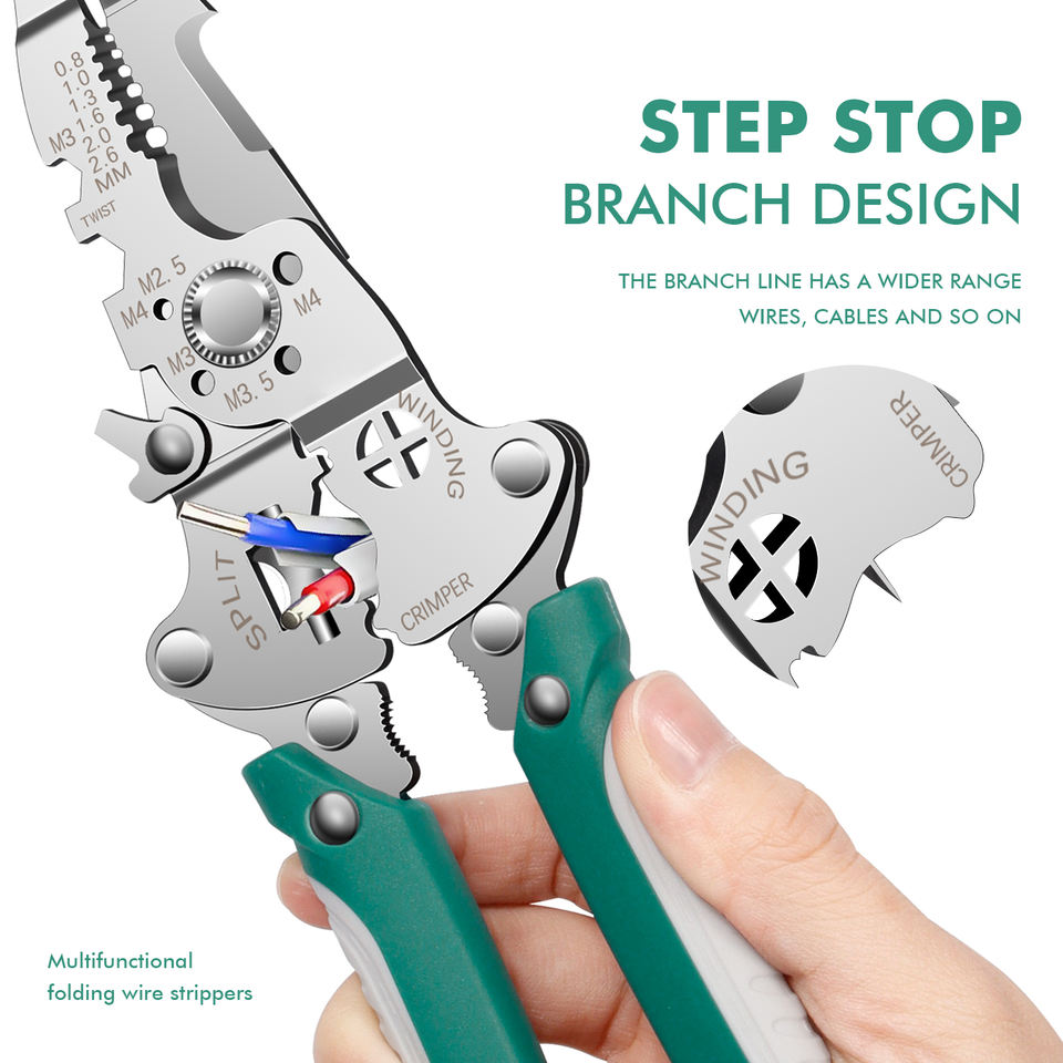 2025 New Design 9 in 1 Folding Wire Strippers Crimping Pliers Multi-Functional Pliers for Electricians and Home Repair Hand Tool