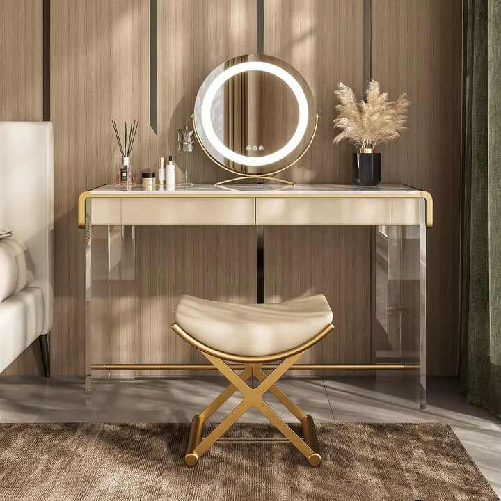 2025 nouvelles arrivées de conception simple chambre atmosphérique en bois blanc maquillage coiffeuse