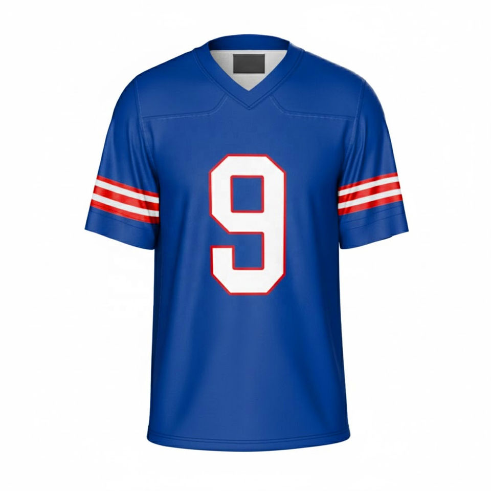 Nouveau design 2025 – Maillot de football américain respirant grande taille à manches courtes, personnalisé avec impression par transfert thermique