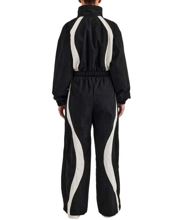 2025 nouveau Design Logo personnalisé femmes deux pièces tenues ensemble taille haute pantalon à manches longues fermeture éclair avant coupe-vent combinaison survêtement
