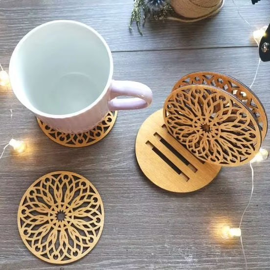 2025 nouveau Design fabriqué à la main Style classique sous-verre à thé en bois ensemble vente chaude Table à manger mariage fête sous-verre support