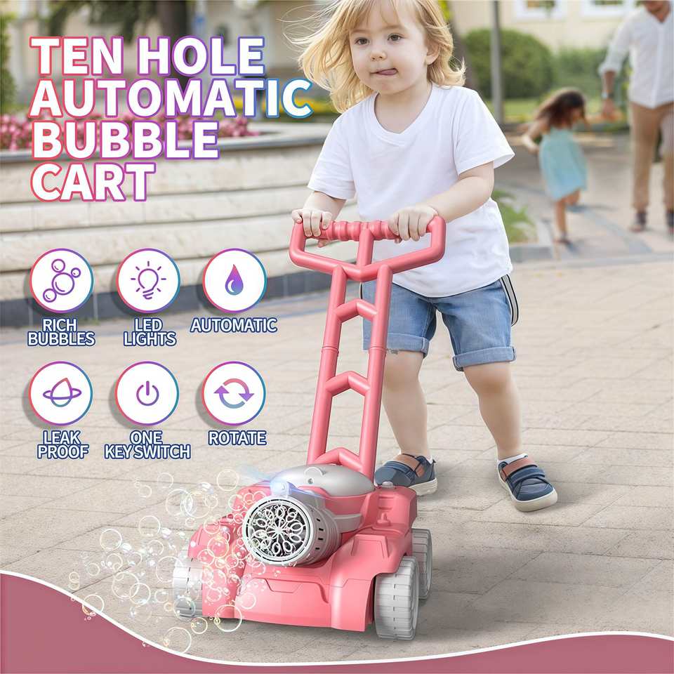 2025 nouveau Design enfants entièrement automatique réservoir Machine à bulles chariot jouet 10 trous souffleur à bulles jouets chariot à bulles avec lumières