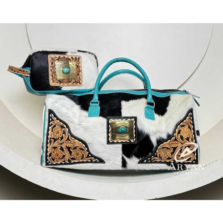Product name:Tooled Cowhide Duffel Bag & Toiletry Bag sets
