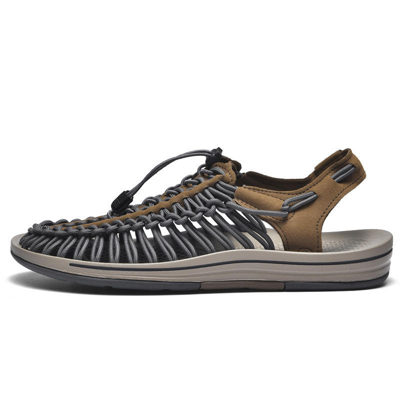 Nouvelles Sandales Décontractées de Plage pour Hommes 2025, Style Romain Tressé, Chaussures de Randonnée et d'Activités Aquatiques en Plein Air avec Bout Ouvert et Semelle Intérieure en PU