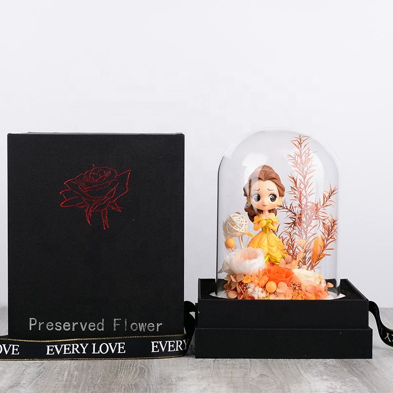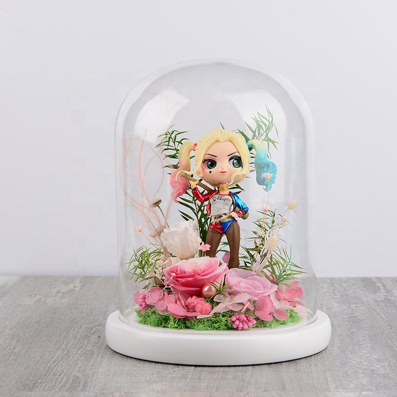 2025 nouveau Design fleur préservée dans un dôme en verre pour toujours fleur Roses personnage de dessin animé avec lumière LED pour cadeau de noël