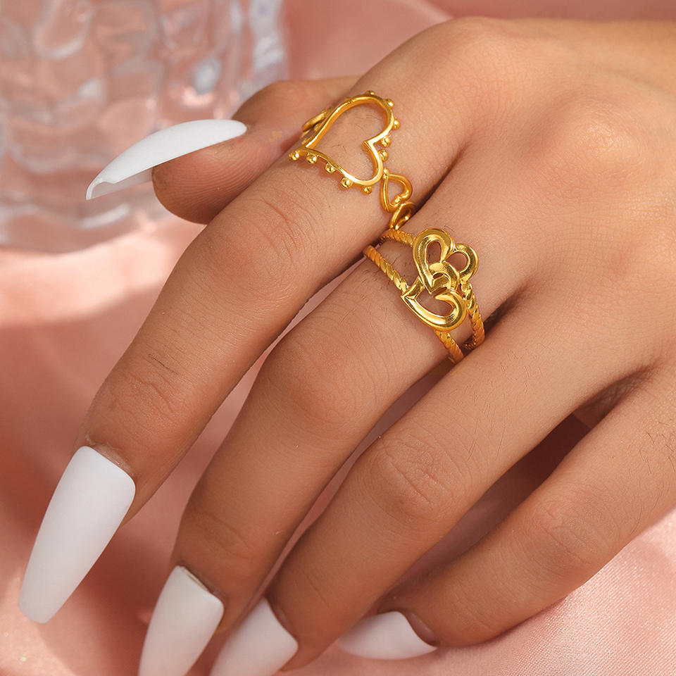 Nouvelle Bague de Fiançailles et de Mariage Ajustable en Acier Inoxydable Plaqué Or 18K avec Double Cœur et Zircon pour Femme, Design Tendance 2025