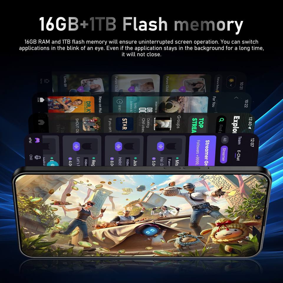 Nouveau Smartphone 5G Double SIM 2025, 16+1 To ROM, Processeur Deca Core, Écran HD 7,3 Pouces, Caméra Arrière 108MP, Version Cellulaire