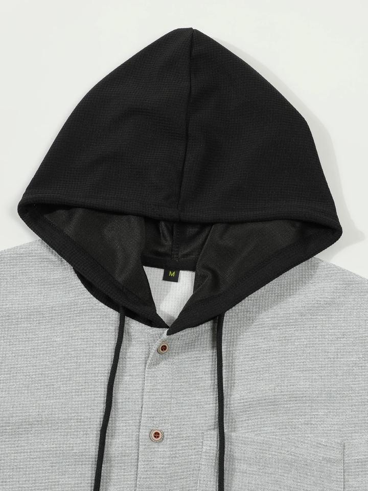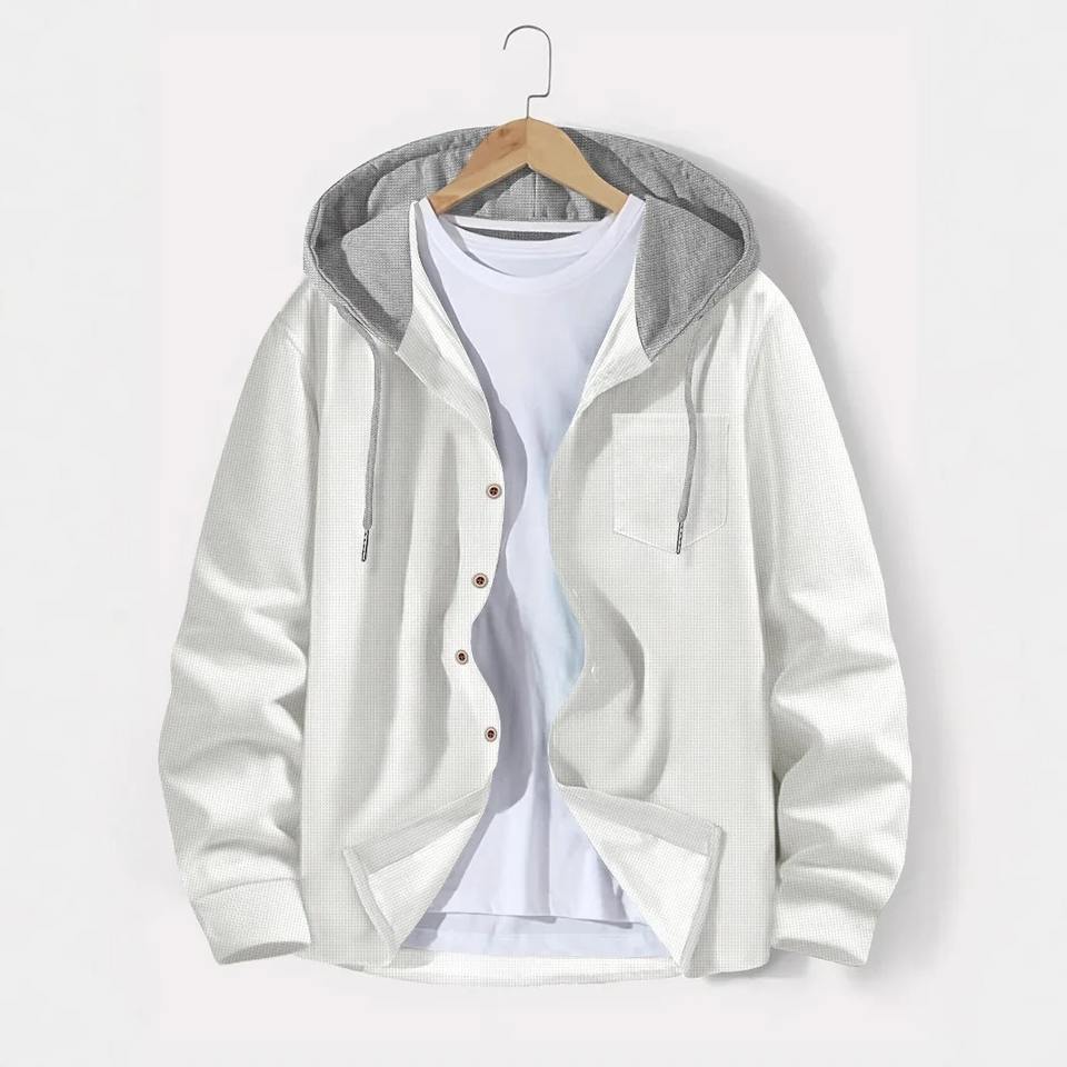 2025 New Fashion Men's Casual Cardigan Coat Spring Autumn Waffle Lattice Breasted Hooded Loose Pullover for Outdoor Oversized