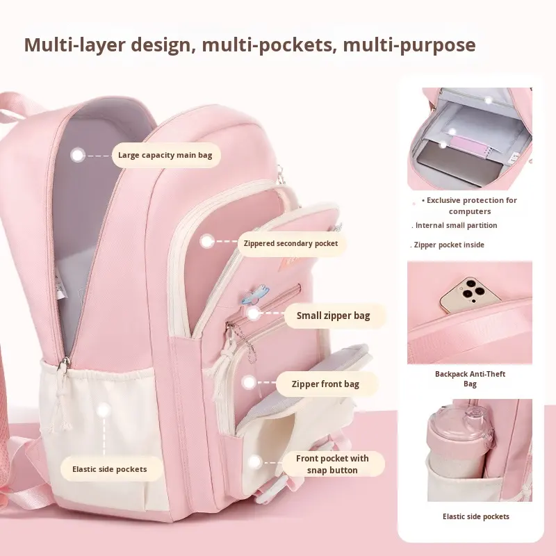 2025 nouvelle mode étudiant grande capacité Oxford tissu école sac à dos hydrofuge et étanche pour les filles de la 5e à la 6e année