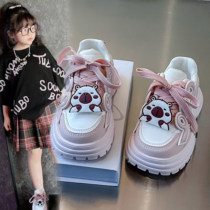 2025 New Girls' Casual Sports Shoes with Soft Bottom Cartoon Fashion Design for Spring Autumn Mesh Insole for Dad's Boys Running