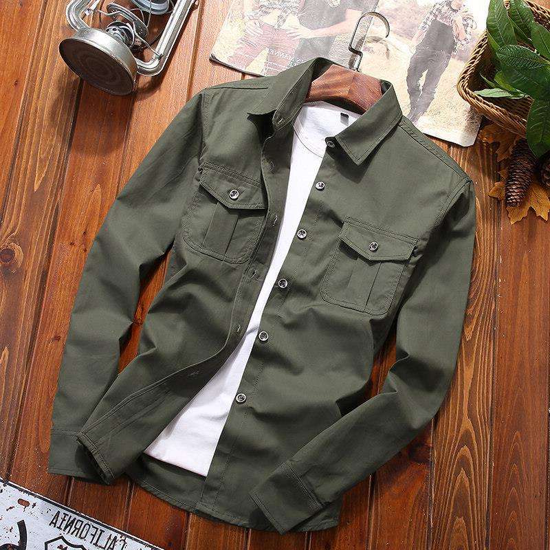 2025 New Heren Leger Groen Gehaakt Denim Slim-Fit Shirt Met Lange Mouwen Puur Katoen Modieus Casual Voor Zomer Lente En Herfst