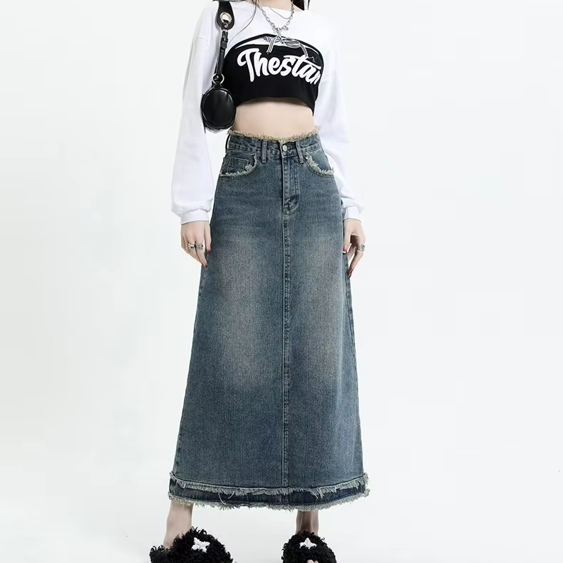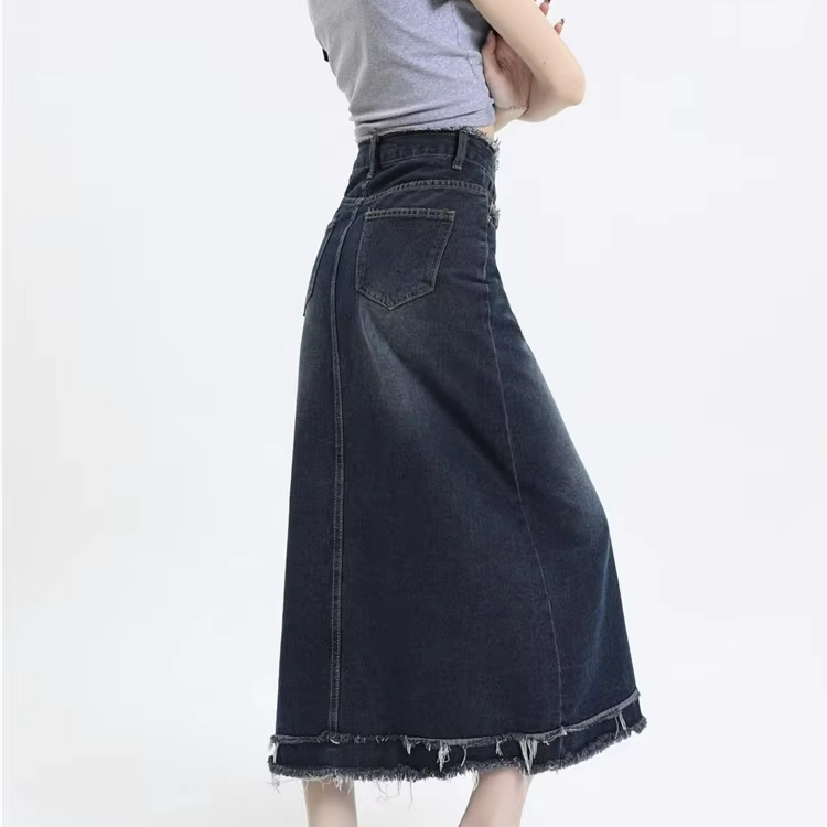 2025 nouvelle jupe en jean Maxi boutonnée taille haute polyvalente mi-longue a-ligne femmes Stretch Jean jupe Mujer