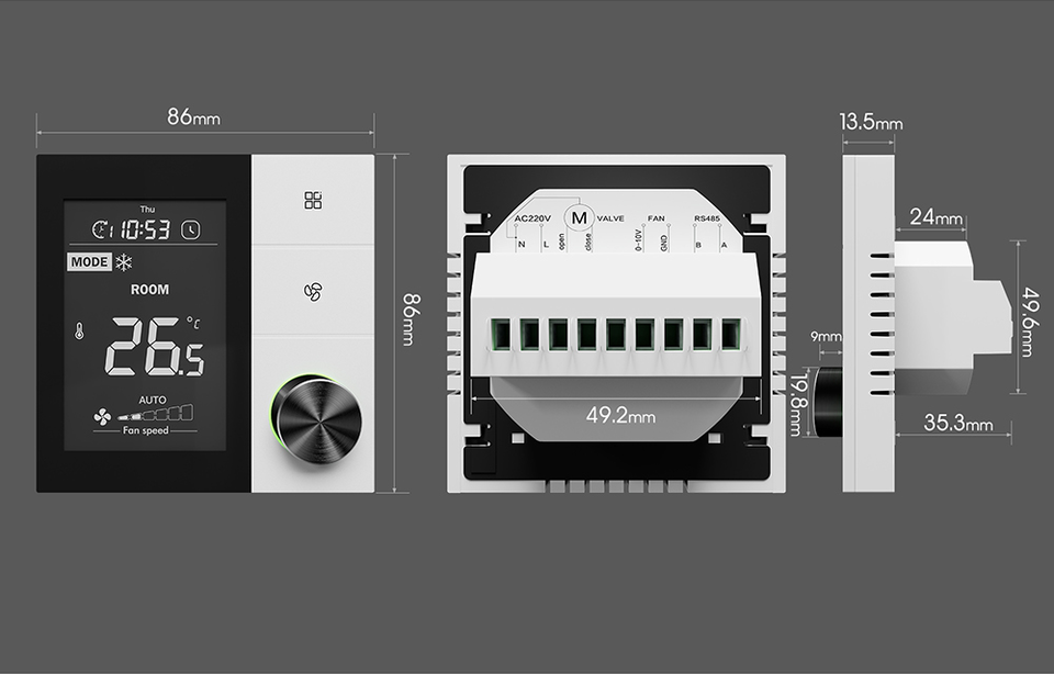 2025 nouveau bouton tactile AC220V EC0-10V 2/4 tuyaux 3 thermostats de bobine de ventilateur numérique à vitesse de ventilateur