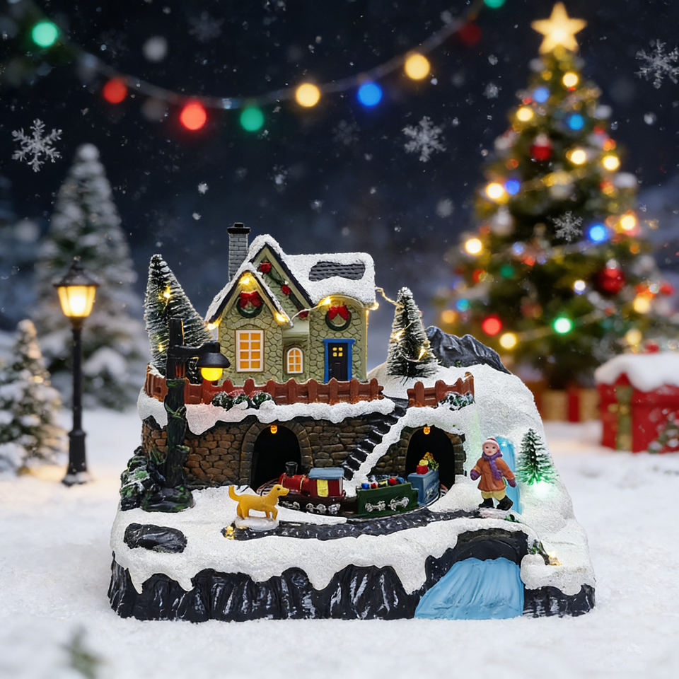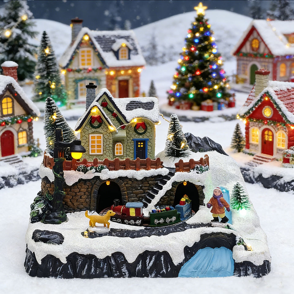 Figurines de maisons de village de Noël avec Père Noël éclairé par LED, nouveauté 2025, décorations de Noël