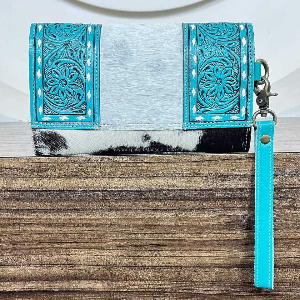 Product name:Hand Tooled Cowhide Leather Wristlet Clutch