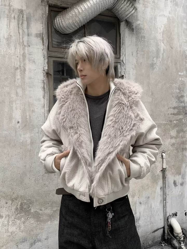 Veste d'homme en polyester respirant à col large et fourrure épaisse, nouvelle collection 2025, luxe, fermeture éclair, style varsity, extérieur, rembourrage en coton épais