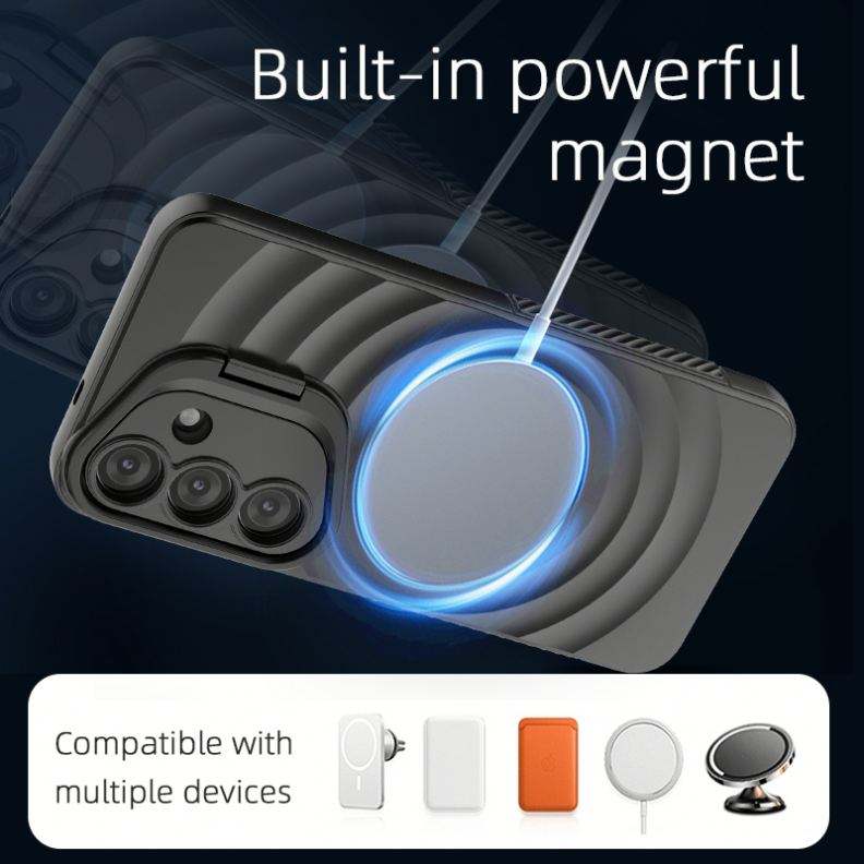 Étui de téléphone magnétique sans fil antichoc de luxe 2025 en TPU+PC avec béquille pour Samsung S25 Plus Ultra