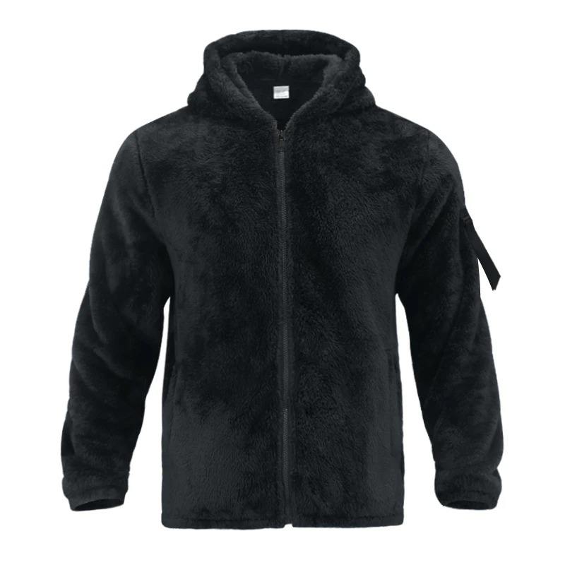 2025 New Men's Hoodie Solid Color Double-Sided Arctic Velvet Loose Hooded Zipper High Street Trendy Casual Jacket Sweater Jacket