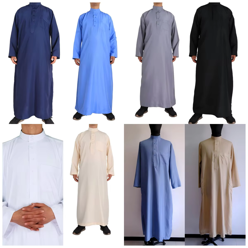 Nouveau modèle 2025, nouveau style, vêtements islamiques, thobe musulman pour hommes, thobe saoudien pour hommes, manches longues, respirant