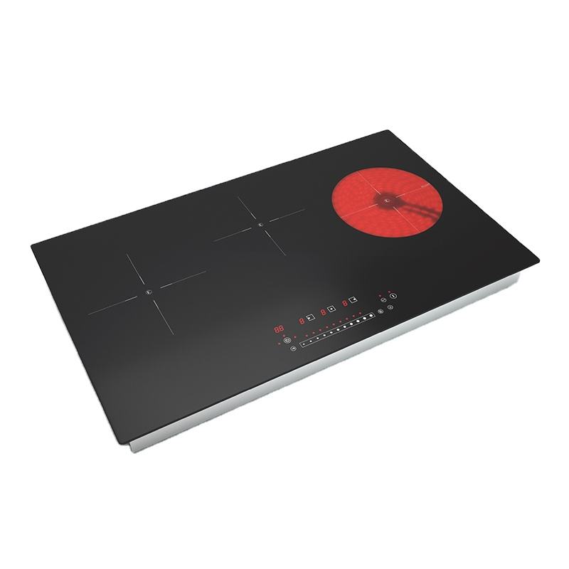 Nouvelle Table de Cuisson à Induction Multifonctionnelle 3 Brûleurs Encastrable Électrique 3 Zones Combi 6200W Haute Puissance pour Maison, Extérieur et Camping-Car avec Capteur