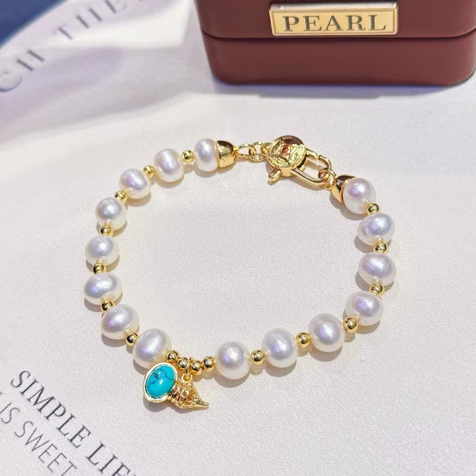 2025 New Natural Freshwater Pearl Fashion Minimalist Bracelet for Girls Handmade with Fu Character One Piece Hair