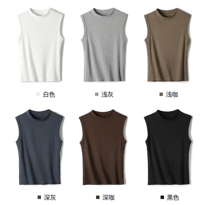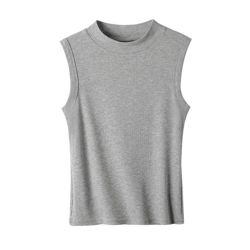 2025 nouveau col rond fileté bas chemise femmes sans manches gilet couleur unie jarretelle pour usage externe interne superposition haut