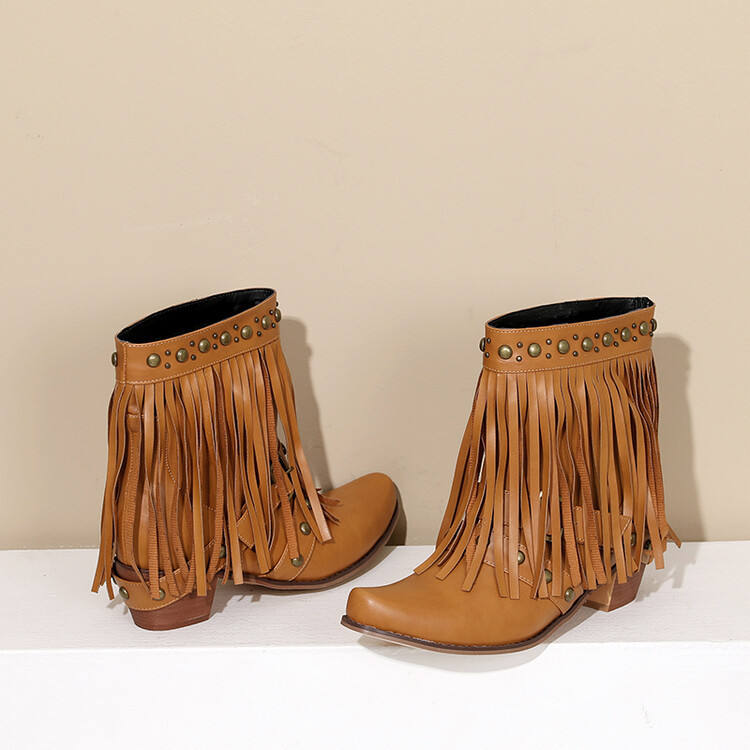 2025 New Pointed-Toe Tassel Boots - Rhinestone Ankle Boots with Chunky Heel, Fashionable Personal Item for Stylish Outfits