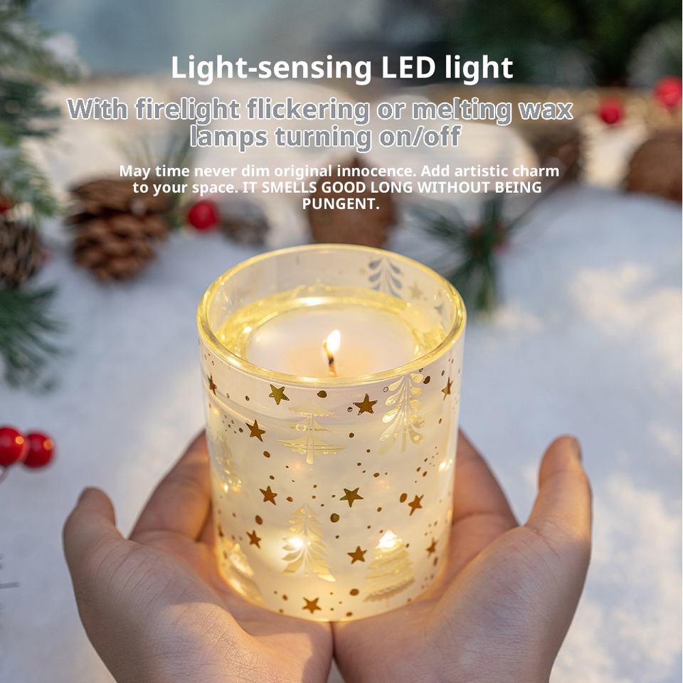 Nouveauté 2025, bougies parfumées personnalisées de luxe avec LED intégrée sensible à la lumière, cadeaux romantiques de Noël, décorations de vacances