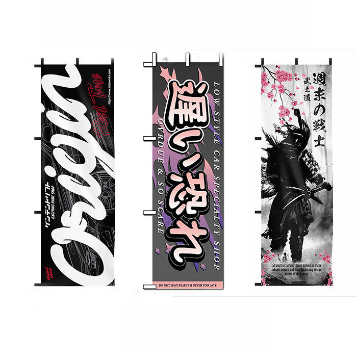 Mots-clés:Polyester imprimé numérique accrochant des bannières de Nobori