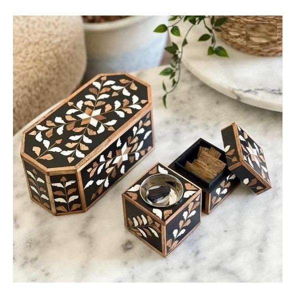 2025 New Quality Handicrafts Acacia Wood Bakhoor Set Incense Burner Rose Scent Customizable Color Middle East Design Aromatic
