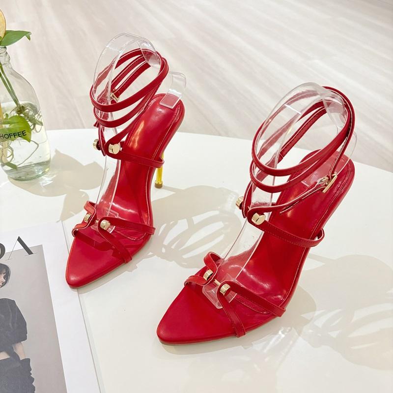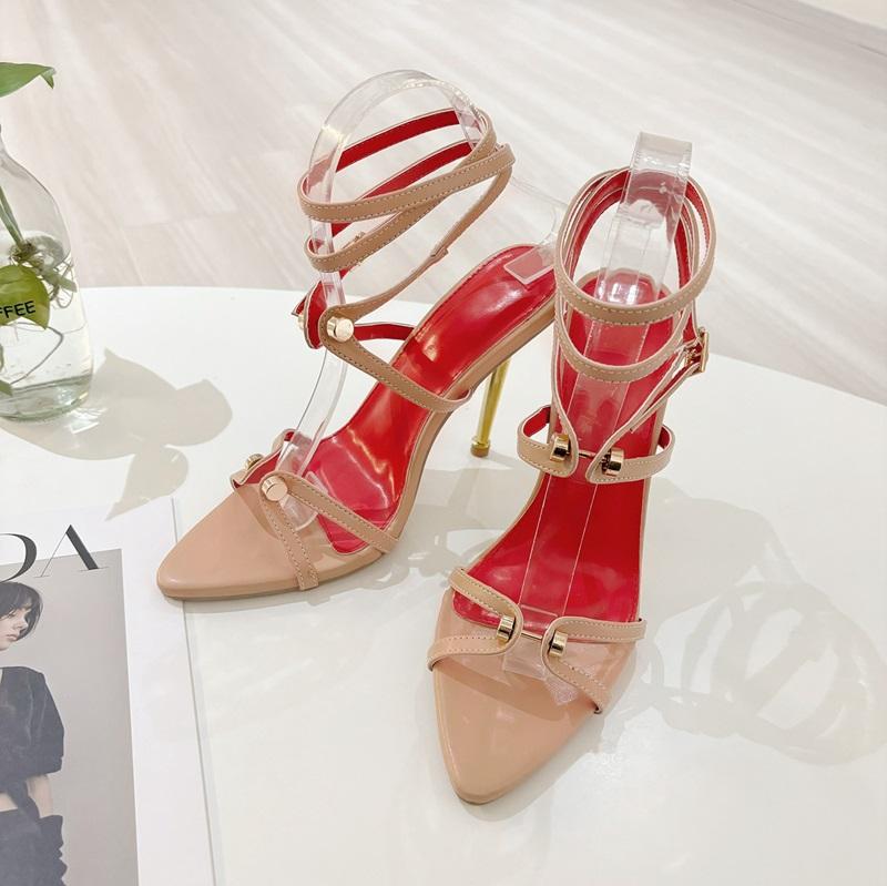 Nouvelles sandales sexy à talons hauts et bout pointu avec boucle à rivets en métal et lacets, collection 2025